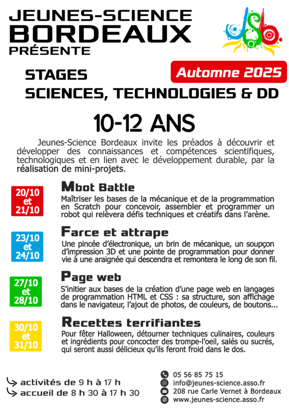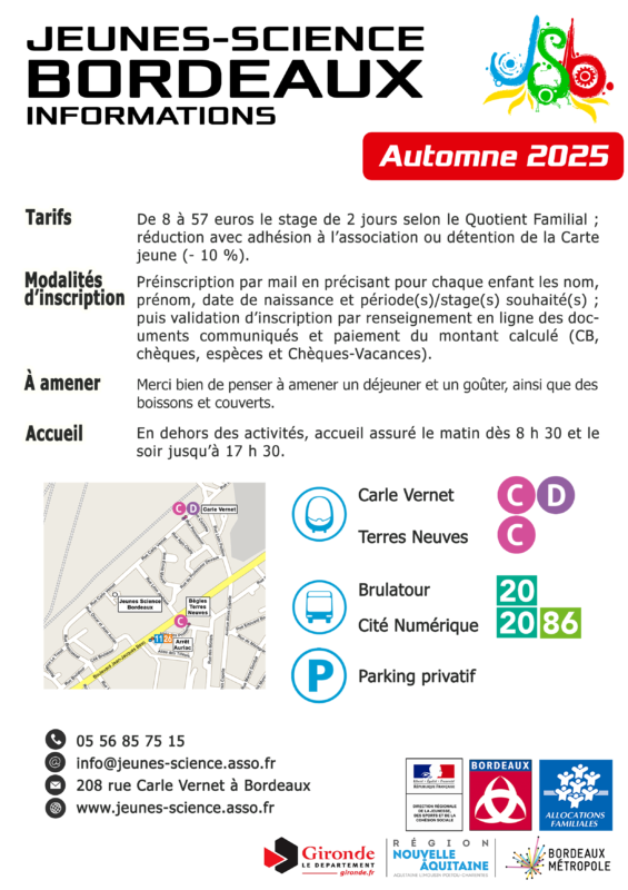 Pour nous permettre de traiter au mieux vos demandes, nous vous invitons à privilégier de nous les adresser par e-mail à l’adresse info@jeunes-science.asso.fr en précisant :